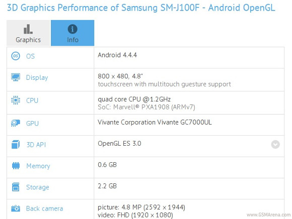 As always, this has resulted in a list of its most important specs becoming public. The J100F boasts a 4.8-inch 480x800 touchscreen, a 5 MP rear camera with LED flash, a 5 MP front camera (both with 1080p video recording support), 1GB of RAM, and 4GB of built-in storage (of which 2.2GB will be user accessible).